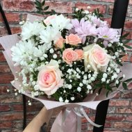 *На фото представлен возможный вариант сборки букета. Допускаются некоторые замены в связи с сезонностью. Мы соберем максимально похожую композицию с использованием сезонных цветов и декоративно-цветового оформления.