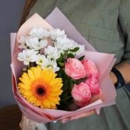 Герберы можно сочетать с другими цветами: